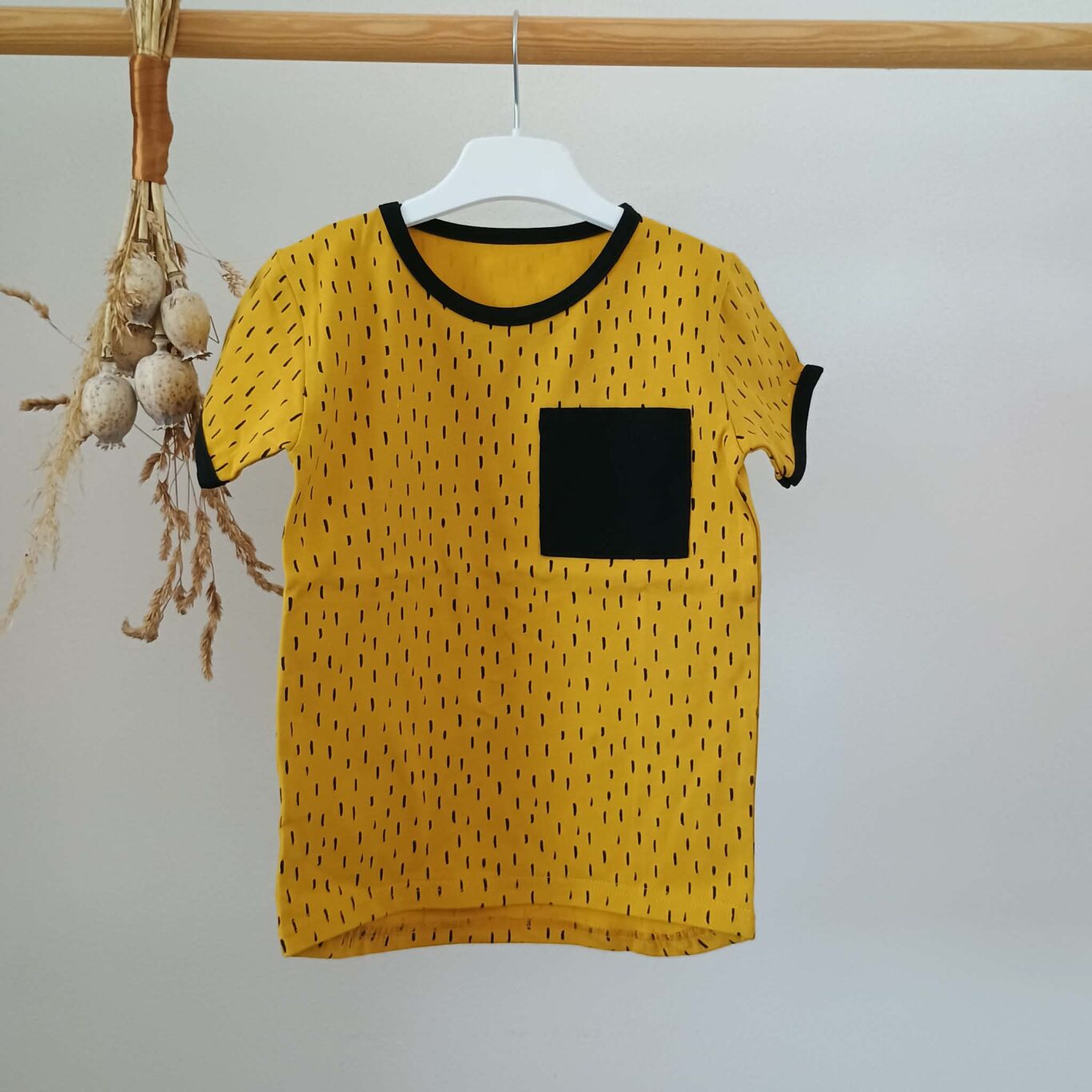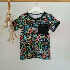 Tričko s krátkym rukávom a pekným vzorom. Veselá farba na jar, leto oživí každé dieťatko.