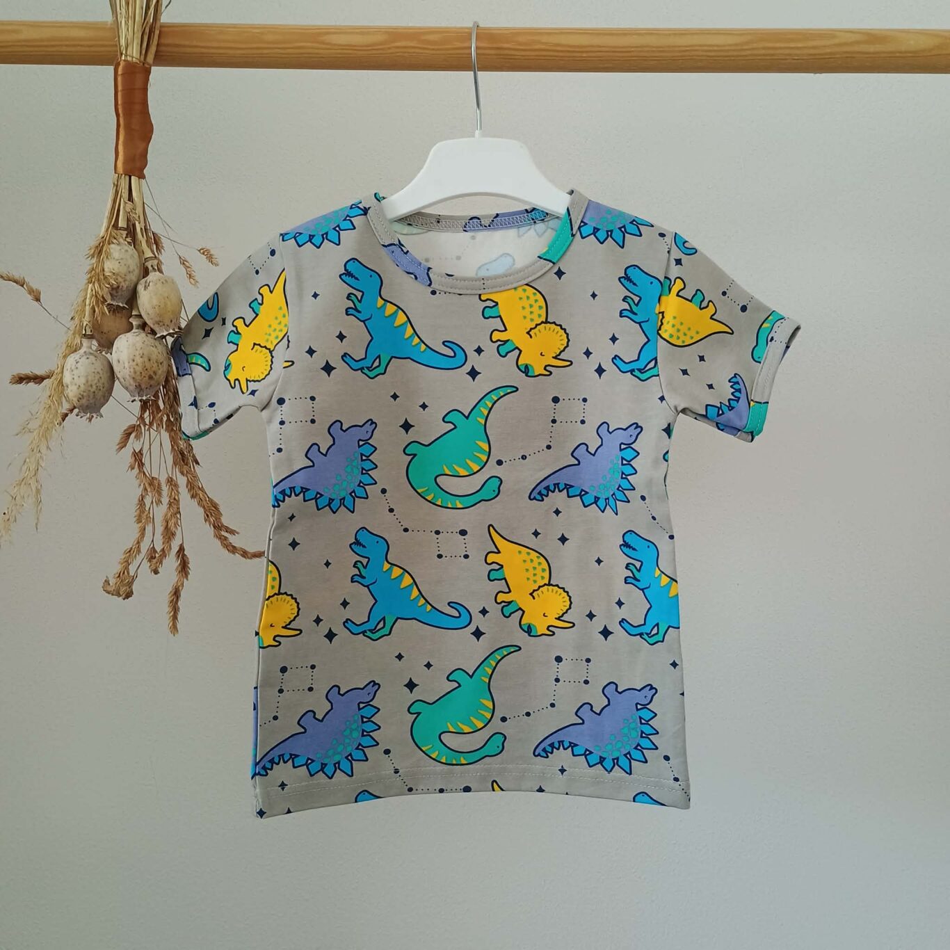 Elastické tričko pre fanúšikov dinosaurov. Perfektný elastický materiál pre malých objaviteľov.